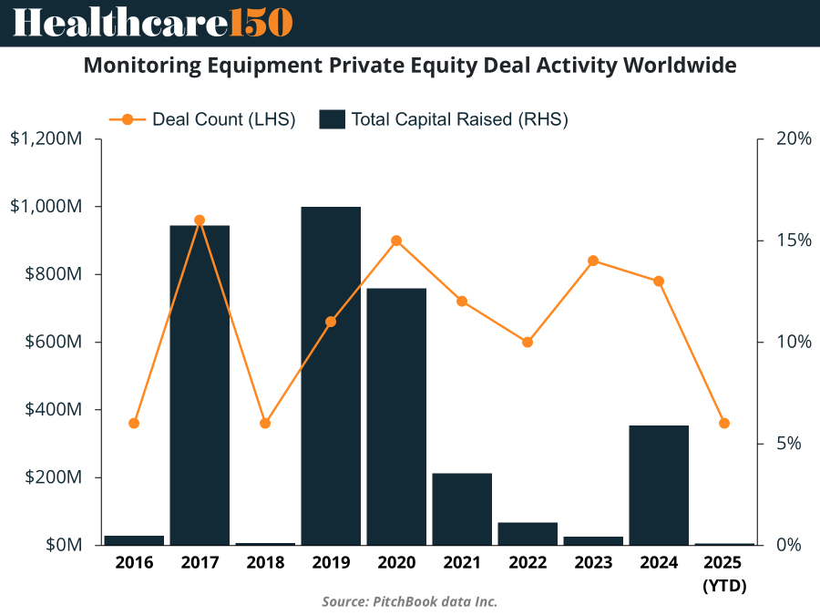 Private equity loves a growth story—but it's not writing blank checks for medical monitoring equipment anymore. Despite a market that's set to nearly double by 2032, with wearables and remote patient monitoring (RPM) driving an 18.9% CAGR in some segments, PE activity is increasingly fragmented. Deal volume is holding steady, but capital raised has nosedived since its 2017 peak. The reason? Likely a cocktail of regulatory risk, long sales cycles, and the fact that not every monitoring business is a wearable unicorn. The smart money is now chasing platform plays—companies that combine hardware, software, and services—rather than betting big on the next bedside monitor. (More)
